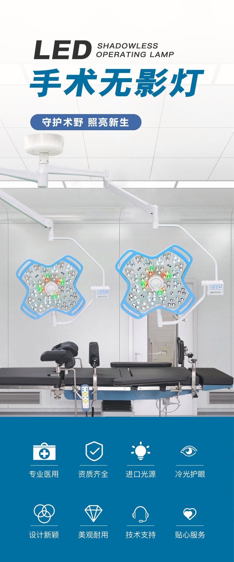 手术无影灯 德曼医疗YDE700/700 类十字款手术灯 RGB色彩补偿
